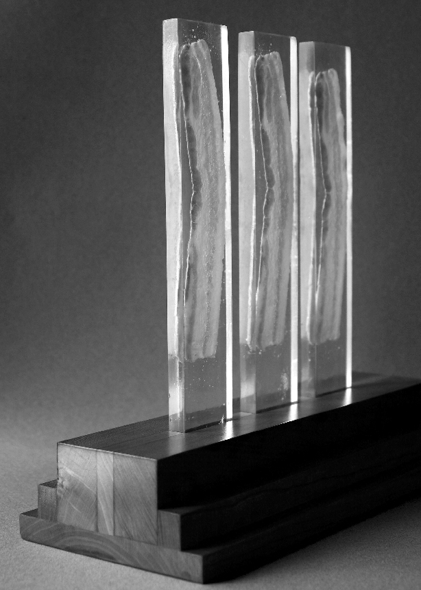 Polyester resin, bacon and wood, 15 x 13 x 3 in.
