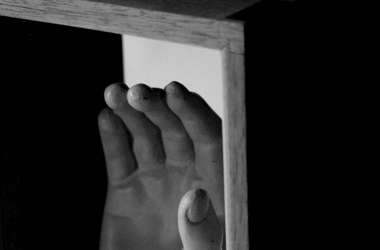 Found object, wood, glass, paper, 6 x 7 x 18 in.