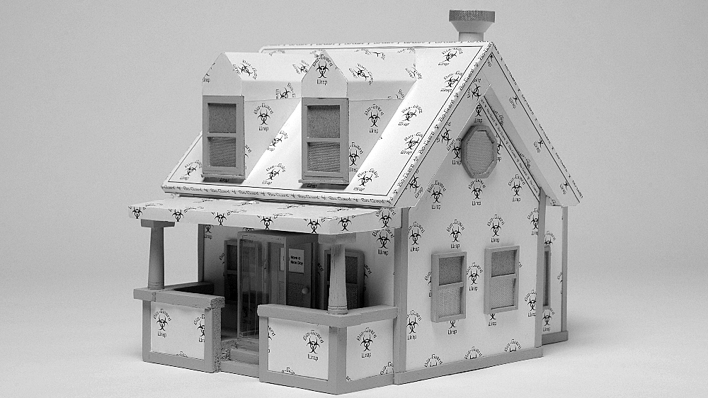 Wood, paper, recycled plastic and paint, 11 x 9 x 9 in.